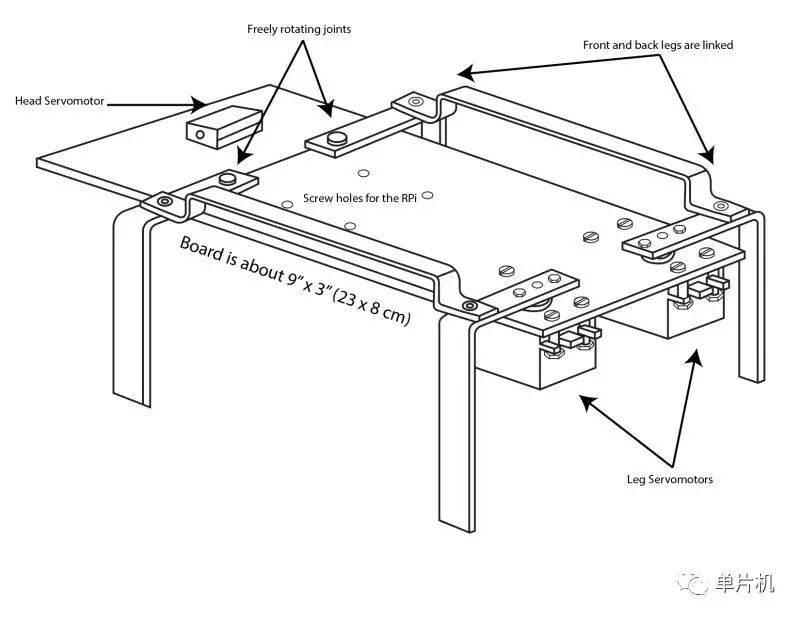 H这是一个可用于构建步行者身体的示例布局。我用亚克力板作为我的平台。腿的细节如下。