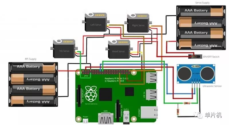电池。伺服应该有和树莓派有不同的电源,我的树莓派用了个小充电宝。