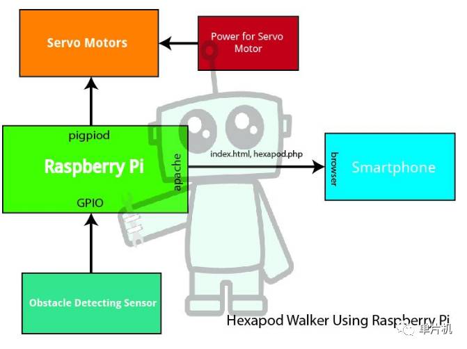 创建Arduino 六足步行者是诱人的也更容易,但要增加的无线连接成本,所以我决定用树莓派。