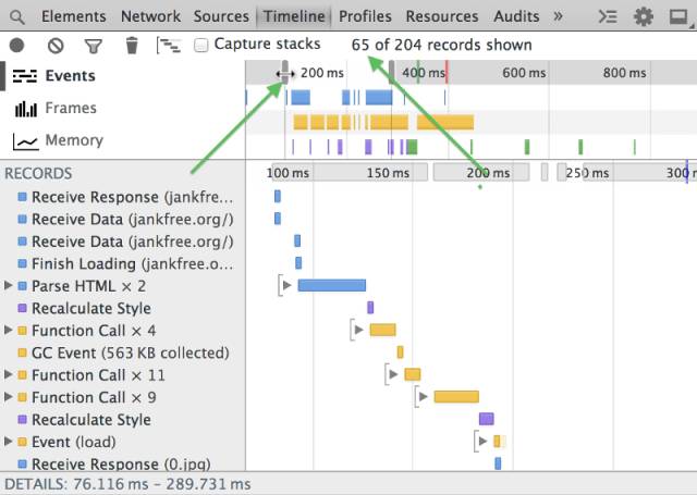 Chrome浏览器开发者工具的Timeline面板,是查看”刷新率”的最佳工具。这一节介绍如何使用这个工具。