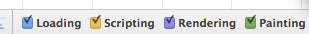 Timeline面板提供两种查看方式:横条的是”事件模式”(Event Mode),显示重新渲染的各种事件所耗费的时间;竖条的是”帧模式”(Frame Mode),显示每一帧的时间耗费在哪里。