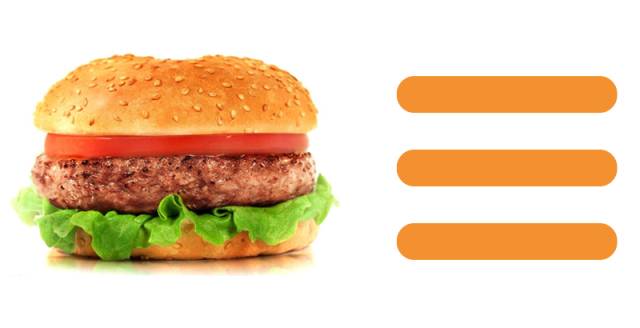 在隐藏的同时,我们也希望当用户需要的时候,这些隐藏的功能可以随时随地的呈现出来。汉堡按钮可以帮助我们实现这一点。常见的汉堡按钮是由三条水平线条构成的,很像两层面包一层肉的汉堡包,所以我们形象的称之为汉堡按钮。