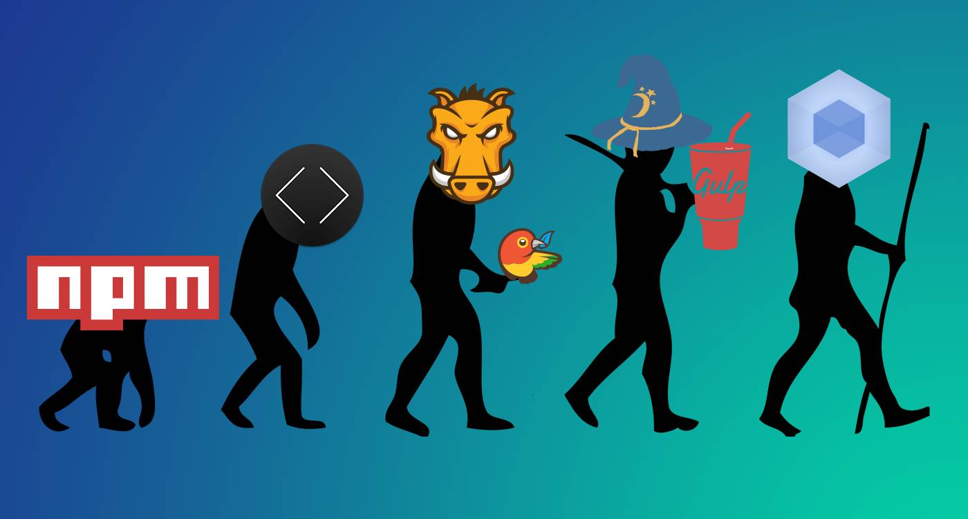 2013 年,Grunt 是最流行的前端构建工具,Gulp 在不久后紧跟其后。它们都依赖一些集成了其他命令行工具的插件。最近最流行的选择似乎是使用 npm 内建的脚本功能自身,不使用插件而是直接使用其他的命令行工具。