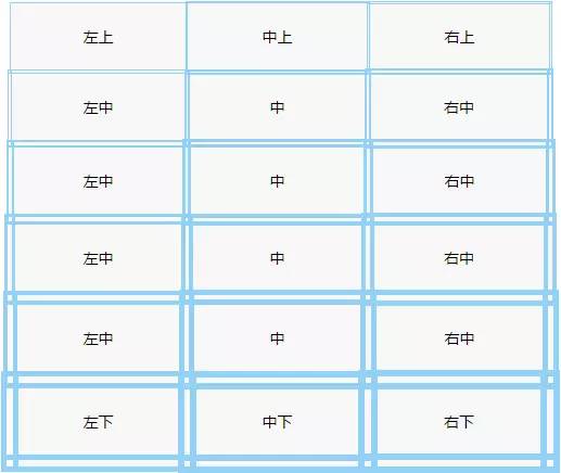 • 优先级如下:’table-cell’,’table-row’,’table-row-group’,’table-col’,’table-col-group’, ‘table’