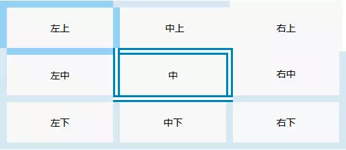 从“中”这个单元格的四个角可以看出,四个角除了会的底边是有其他叫层叠而来,而不是单一的去选择某种边框去渲染