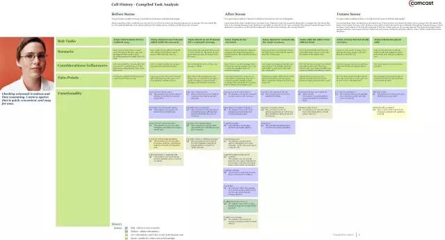 如果说传统流程中我们需要从产品给的方案里对需求进行逆向推理还原的话,全链路设计流程里,则是一开始就要自己从「混沌状态」里抽丝剥茧,驱动对方一起思考和找到答案。这个过程中有很多方法可以帮助我们,比如对方提过来的是提升转化率一类业务指标,可以使用用户行为漏斗分析看各个阶段的数据流失情况,找到问题集中在哪;又比如对方给了一堆原始用户反馈,可以用 Service Blueprint、Task Grid 等方法分阶段归类问题,用 5 Why 分析法层层推导问题本质、还原问题场景,进而找到解决问题的思路,等等。除此之外,亲身去线下场景实地体验走查、拍照记录,把自己深度代入用户视角去感受问题、发现机会点也很重要。