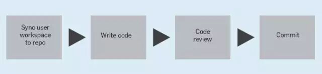 开发者先创建文件的本地拷贝,这叫做”工作区”(workspace)。完成开发后,工作区的快照共享给其他开发者进行代码评审。只有通过了评审,代码才能合并到中央仓库。