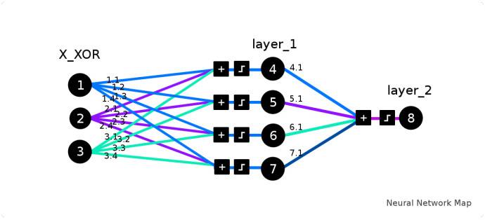 学习这段代码之前,我们首先通过这个模拟器交互学习一到两个小时来掌握神经网络的核心逻辑。然后阅读 Trask 的博客,然后再阅读四次。需要注意到,X_XOR 数据中添加的参数 [1] 是偏置神经元,它们等价于线性函数中的常数项。