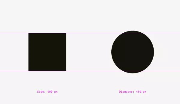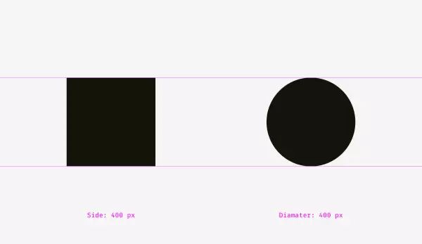 长宽 400px 的正方形与长宽 400px 的圆形哪一个更大?假如这样问你的话,那么答案当然是一样大。但是来看看下面这张图,长宽各 400px 的两个图形看起来并不一样大。你的眼睛告诉你 400px 的正方形比 400px 的圆形更大一些。物体的物理尺寸是一样的,但视觉尺寸却有可能不一样。
