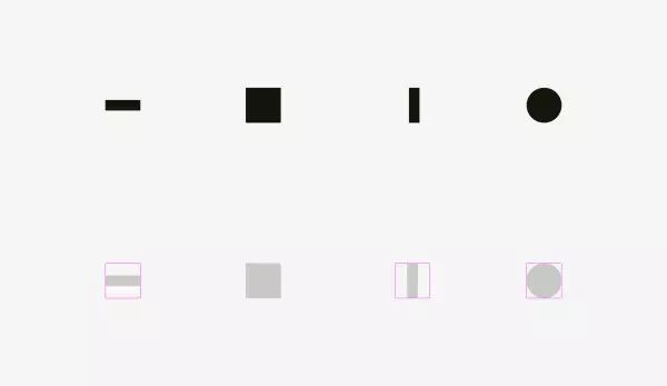 • 边缘有角的图形要拉长一些才能在视觉上与方形边缘的长度对齐。