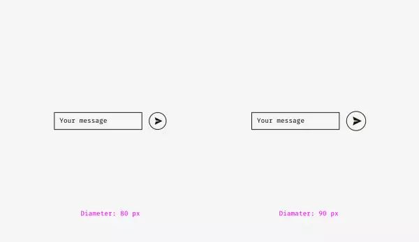 另外一个达不到视觉尺寸相等的重灾区就是表单配按钮这种常见的组合。通常是长方形的表单如果和直径相等的圆形按钮摆在一起,必然也会出现圆形按钮看起来比较小的问题。
