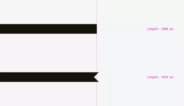 试着增加下面那条长条的长度。让下面那条长条多出 20px,这时候它们看起来才是对齐的,达成了视觉对齐。