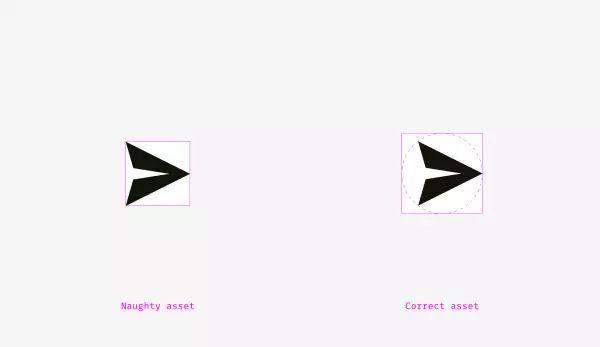 好吧,希望你能够看出来左边那颗按钮是有问题的,实际上我在画这枚按钮的时候确实点了对齐,但是为什么还会出问题呢?跟文字按钮对齐一样,对齐的方式选错了。一般来说,我们都会默认将飞机当做是一个正方形来进行对齐,但由于图形形状的缘故,这样做必然是错的,将会导致 icon 过于靠左。