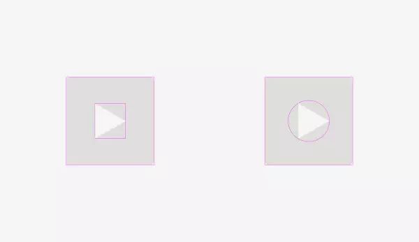 如下图,播放按钮也有三个角,那么做它的对齐工作也要注意啦。左边图那枚按钮就是直接点对齐的产物,看起来非常奇怪,对吧?