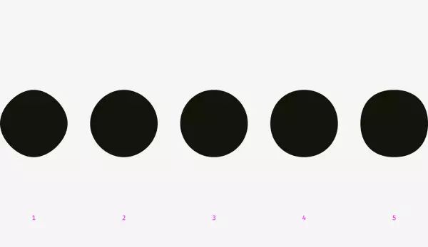 圆角也有细节?不是设置一下就好了么?当然不是,一个简简单单的圆角也有很丰富的细节。我们前面说过了,眼睛看到的东西并不能尽信,先来看看下面五个圆并尝试回答哪个圆最圆。