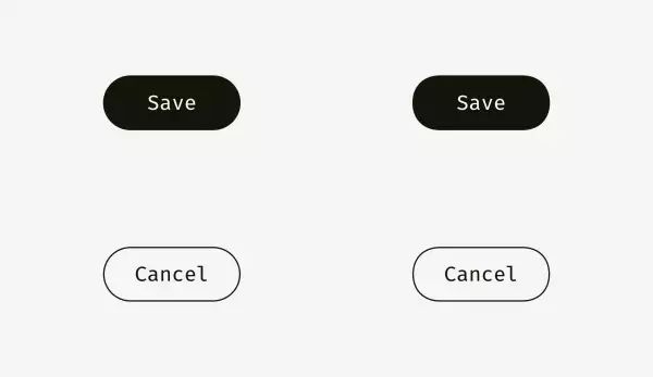 你的眼睛肯定能够察觉得出来右手边的那组按钮的圆角看起来更圆,更自然,也更悦目。