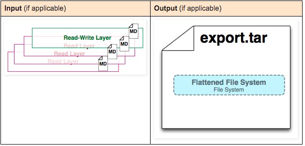 docker export命令创建一个tar文件,并且移除了元数据和不必要的层,将多个层整合成了一个层,只保存了当前统一视角看到的内容(译者注:expoxt后的容器再import到Docker中,通过docker images –tree命令只能看到一个镜像;而save后的镜像则不同,它能够看到这个镜像的历史镜像)。