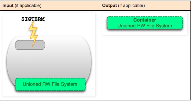 一个运行态容器(running container)被定义为一个可读写的统一文件系统加上隔离的进程空间和包含其中的进程。下面这张图片展示了一个运行中的容器。