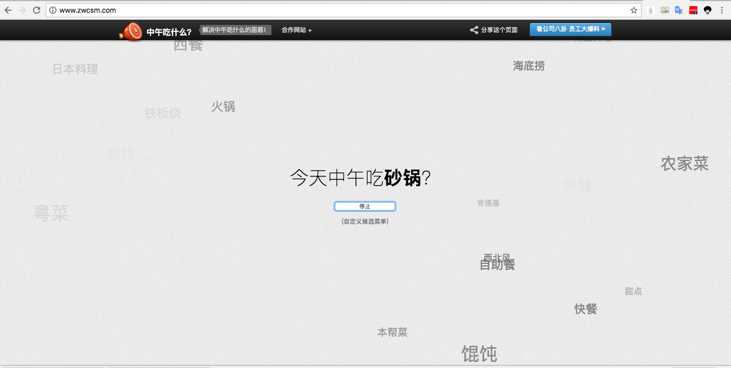 一个废柴但是有趣的网站,对于选择恐惧症来说,不用思考中午吃什么实在太省事儿啦!via antiBBB