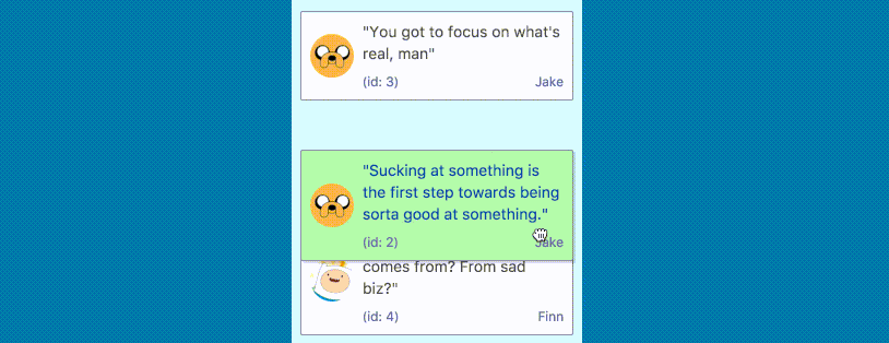 这是由 Atlassian 开源的用于制作拖拽组件的 React 库。它提供了强大、易用的 API,以及丰富的定制选项和控件。它所生成的组件,也具备了平滑的 GPU 动画效果。当元素被拾取或重新排序时,其效果将会展示出来。