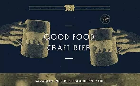 一个啤酒厂的网站,看来酒行业,真的很适合使用复古风……我们看这网站时,可以学习下这个文字的效果,应该不会太难。