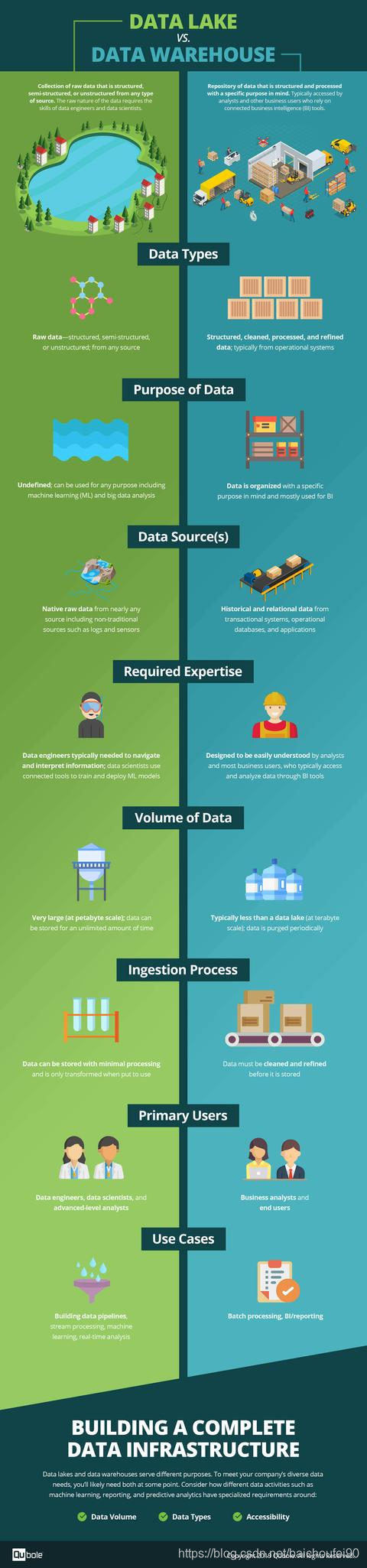 而数据仓库则用于存储来自多个来源的结构化数据。