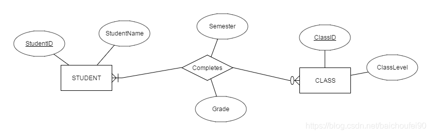比如为一个学生选课系统进行ER建模,得到如下结果: