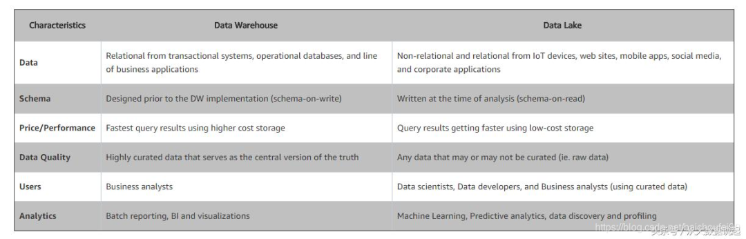 数据仓库、数据湖与关系数据库系统之间的主要区别在于: