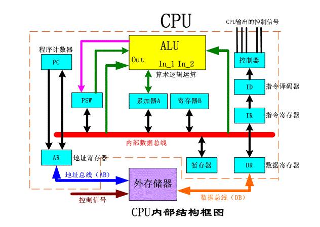 AR的作用是用来存放将要寻址的外部存储器单元的地址信息,指令码所在存储单元的地址编码,由程序计数器PC产生,而指令中操作数所在的存储单元地址码,由指令的操作数给定。从上图中我们可以看到,地址寄存器AR通过地址总线AB与外部存储器相连。