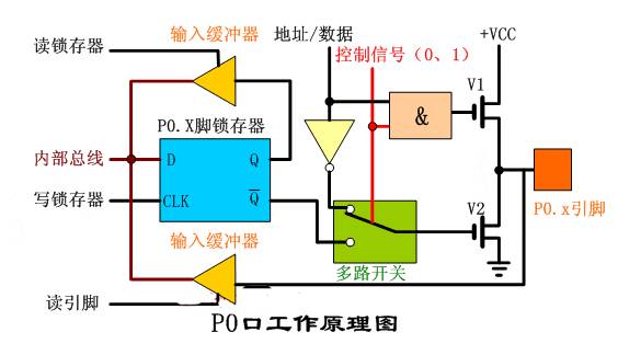 前面我们已将P0口的各单元部件进行了一个详细的讲解,下面我们就来研究一下P0口做为I/O口及地址/数据总线使用时的具体工作过程。