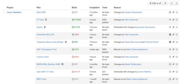 Bamboo的主要优势在于同Atlassian其他产品(如JIRA和Bitbucket)的紧密联系。使用Bamboo,您可以看到自上次部署以来引入的代码更改和JIRA问题。这样,开发人员就可以同步自己的工作流程、始终保持代码正常运行,并了解下一个版本的开发方向以及需要修复的部分。