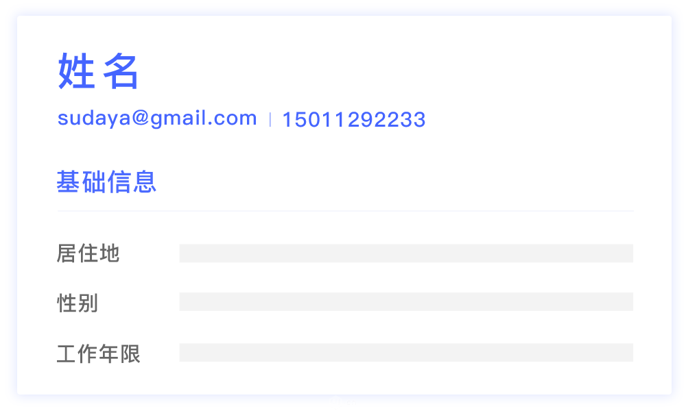 1.基本信息包括:联系方式、姓名、性别、工作年限、居住地、等等…这些并不是最关键的决定性因素。但是要放到最前面,偶尔有一票否决权。
