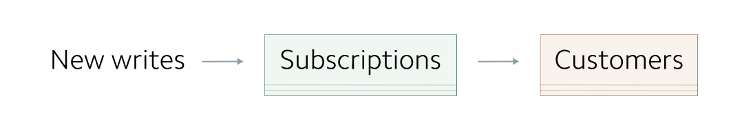 (目前,所有的读操作在 Customers 表上进行,需要将这些操作转移到 Subscriptions 表上)