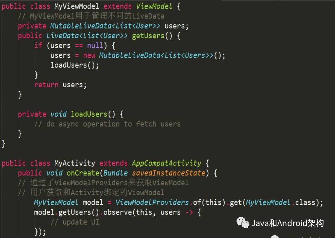 我们可以先来说说LiveData。由于它已经能够感知生命周期,也就意味着我们并不需要在去查询当前UI的生命周期,由于可被观察,也就意味着当它持有的数据发生改变,观察者可以立即受到信息。