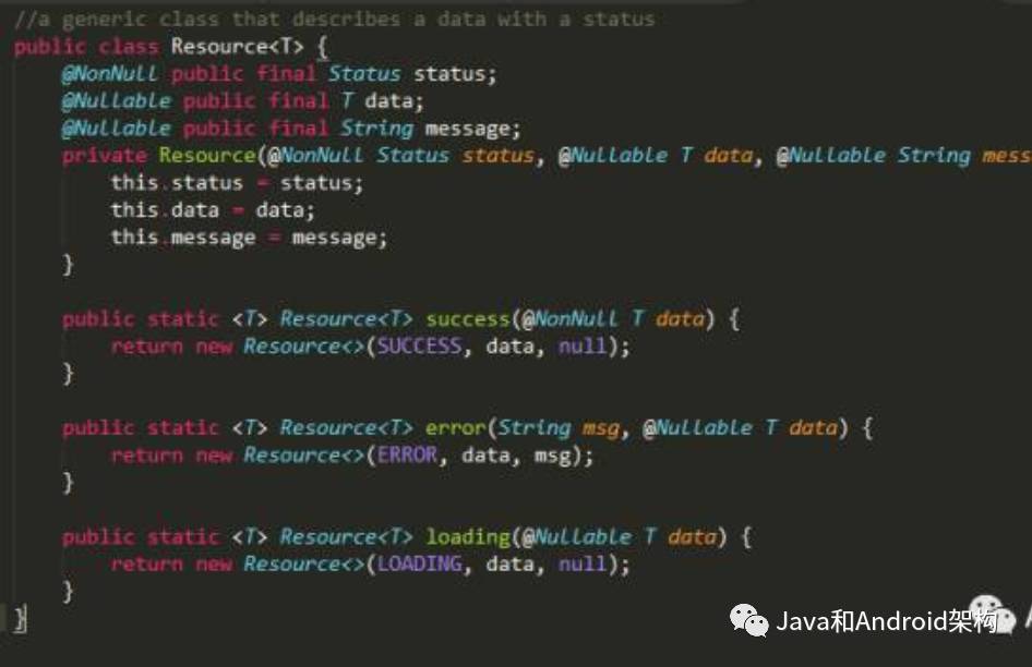 在上面的小结我们故意省略了网络错误和加载状态来保证例子的简洁性。在这一小结我们演示一种使用Resource类来封装数据及其状态。以此来公开网络状态。