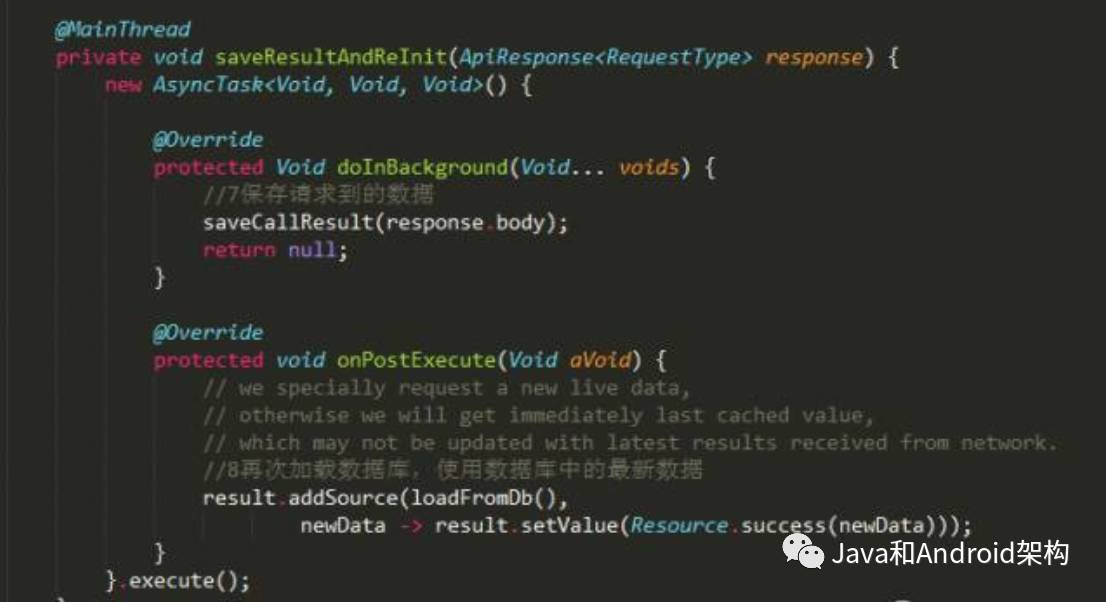 NetworkBoundResource从观察数据库开始,当第一次从数据库加载完实体后,NetworkBoundResource会检查这个结果是否满足用来展示的需求,如不满足则需要从网上重新获取。当然以上两种情况可能同时发生,你希望先将数据显示在UI上的同时去网络上请求新数据。