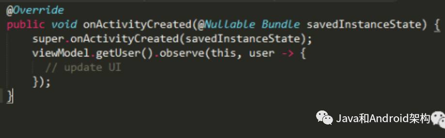 现在我们使用LiveData<User>来代替UserProfileViewModel中的User字段。所以Fragment可以通过观察它来更新数据。LiveData值得称道的地方就在于它是生命周期感知的,当生命周期结束是,其上的观察者会被即使清理。