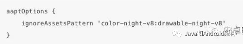 4、如果想整体移除res下某个文件夹可以添加如下aaptOptions配置,而不用打包时手工删除,多个文件夹用:隔开