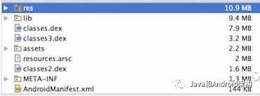 从APK的构成中可以看出占比较大的几个部分,可以着重对其优化