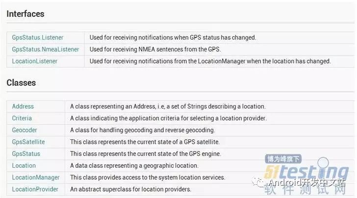 Android定位服务都是位于location下,上面都有相关说明,这里就不详细解析。有一点有需要说说的是:GpsStatus.NmeaListener 官方的说法是可以读取NMEA数据,但是我这里测试发现,并没有读取到NMEA的数据。查阅过一些资料,说是google在底层并没有实现数据反馈的功能。有时间,需要查看一下源码。