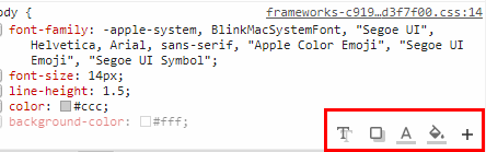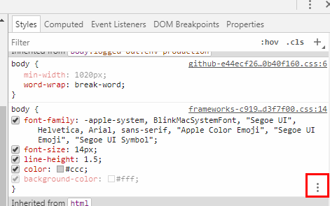 1、在Styles 边栏,鼠标放在每一小块样式规则上,右下方都会有三个小点
