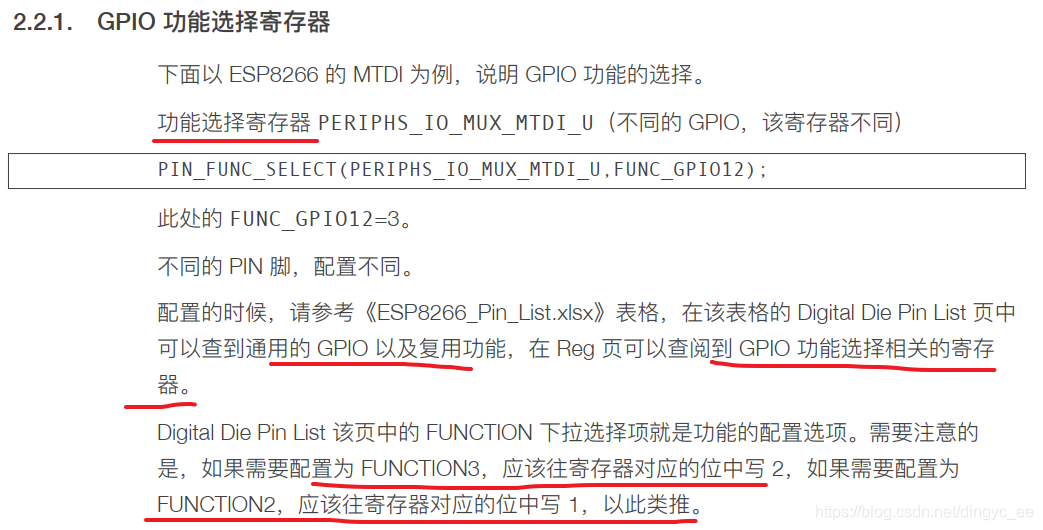 1 调用PIN_FUNC_SELECT函数,配置引脚功能为GPIO;