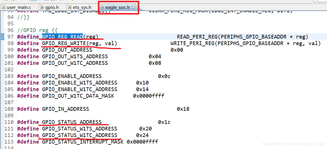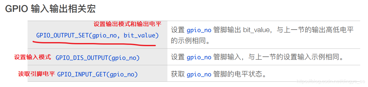 GPIO_REG_READ用于读取寄存器值,GPIO_REG_WRITE向寄存器写入值。