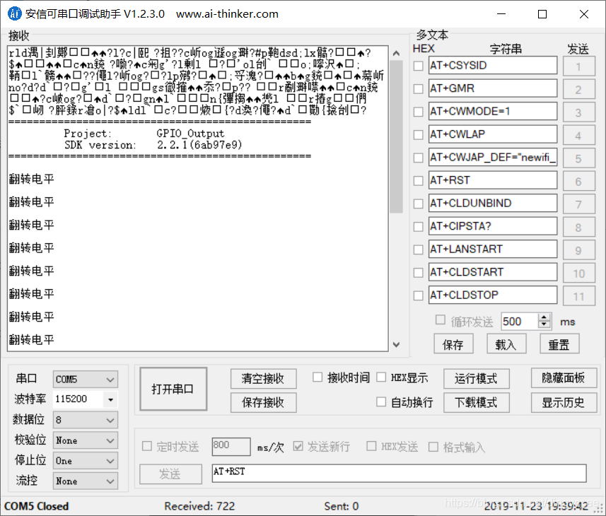 编译程序并下载,LED灯确实在循环的闪烁,并在串口有调试信息输出: