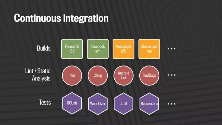 Facebook致力于改善这一情况,并建立和开源了一整套专门针对移动平台上快速开发的工具,包括Nuclide、Buck、Phabricator、各种iOS类库、React Native和Infer。总之,这一系列构建和测试栈使我们能够产生高质量的代码,以便快速部署到移动平台上。
