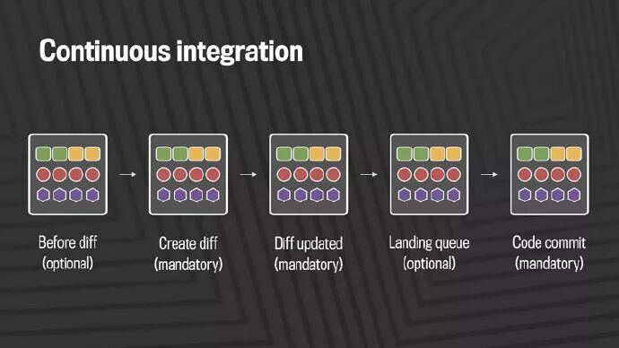 不仅每次提交时会运行构建和测试栈,而且在代码变更的生命周期内也会运行多次。仅在安卓系统上,我们每天就能完成5万到6万次构建。