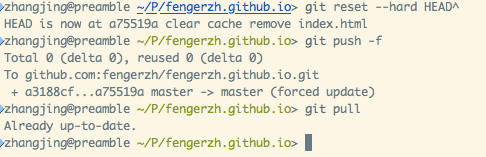还是这个 git reset —hard 命令,只不过这次多了一个参数 origin/master ,正如我们上面讲过的, origin/master 代表 远程仓库 ,既然你已经污染了你的 本地仓库 ,那么就从 远程仓库 把代码取回来吧。