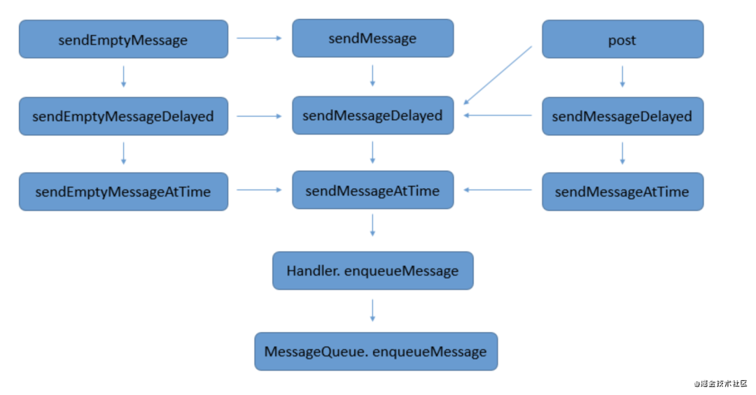 Handler.sendXXX,Handler.postXXX最终会会调到MessageQueue的enqueueMessage方法