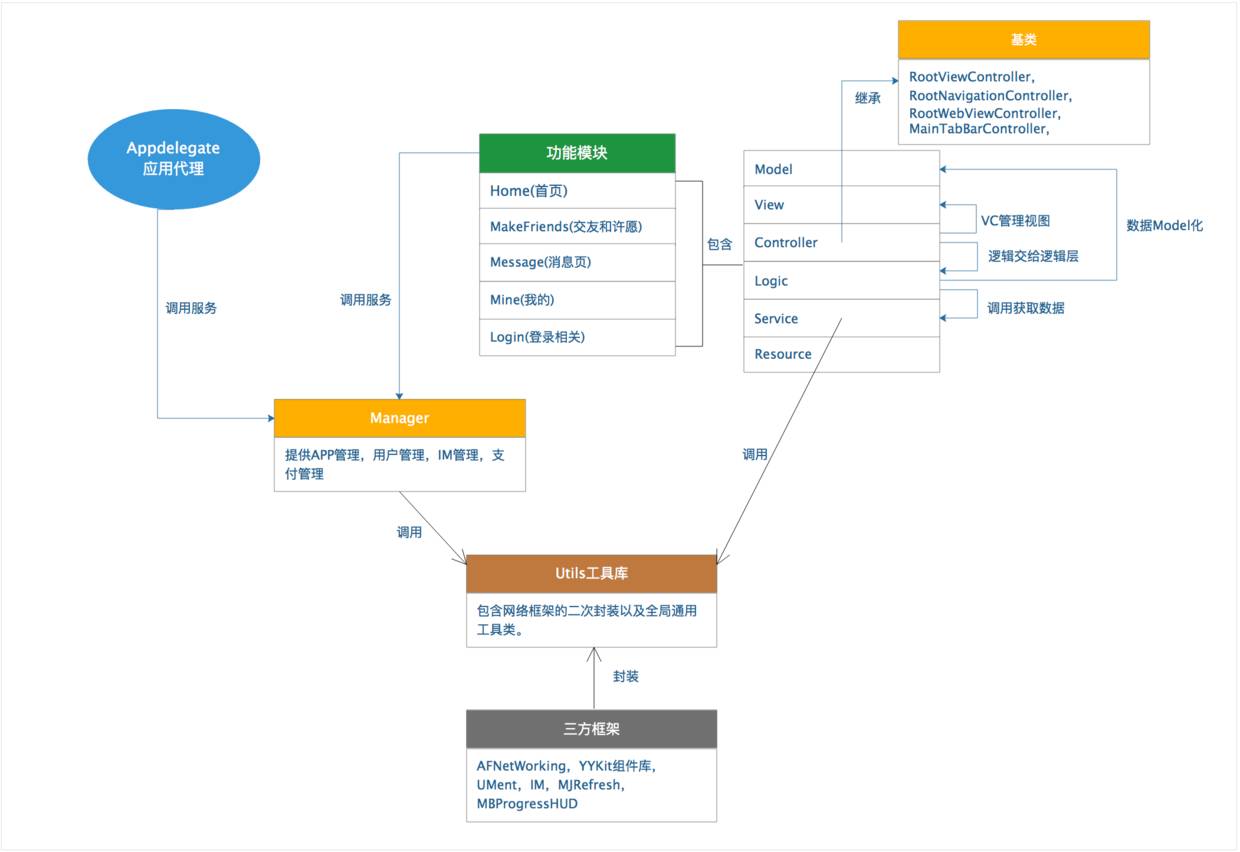 二、我曾接手过一款直播App,光直播间ViewController代码就5500行,里面掺和着接口请求、数据转换、视图管理、业务逻辑等等,读起来十分费劲,Bug定位比较困难,想重构却无从下手,这种情况的发生首先是没有严格遵循模块化的设计理念,各模块没有各司其职,其次是过于严格的遵循了MVC设计模式,只创建了Model View Controller三个文件夹,VC的压力自然非常大。