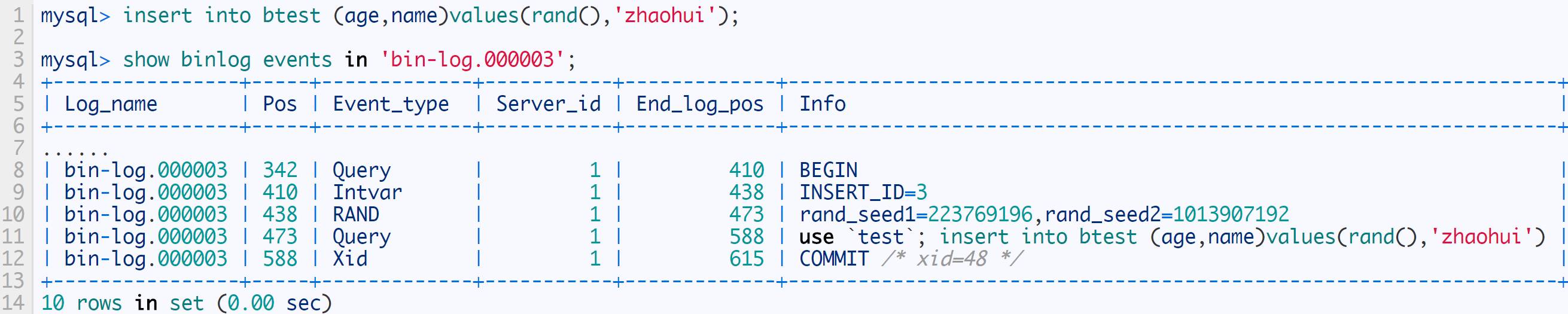 当sql语句中使用了AUTO_INCREMENT的字段或者LAST_INSERT_ID()函数;此事件没有被用在binlog_format为ROW模式的情况下。